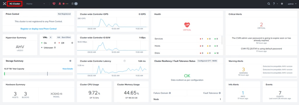 4|登録後、Prism Elementダッシュボードに登録先のPrism Central名が表示されます。