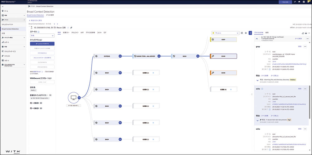またElements MDRでは、運用効率と費用対効果に優れた継続的な監視、検知、対応サービスを提供することで、顧客がこれらの課題に取り組む際の手助けを行う。顧客に代わってインシデント対応を実施できるのだ(対応範囲の設定は可能)。このサービスでは、「WithSecure Elements EDR」(以下、Elements EDR)の「Broad Context Detections(BCD)」、テレメトリー、およびレスポンス機能を使用しており、ウィズセキュアの検知・対応専門チームと全く同じEDR検知データを利用できる。Elements EDRを使用することで、セキュリティインシデント関連のアラートを見逃すことなく、デジタル資産を広範に可視化する。25ライセンスから購入可能で日本語にも対応した。初期設定の方法としては、社内から2名のコンタクトパーソンを登録し、ウィズセキュアのアナリストからの電話連絡先を登録する(連絡対応時間も設定可能)。次に、MDRサービスを有効化することで運用を始められる。設定の手間が少ないので、開始までに手間取らない点もポイントだ。