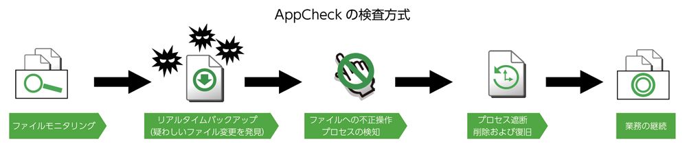 「AppCheck」は、シグネチャ(マルウェアの特徴を識別するためのデータ)を使用しない独自の状況認識技術により、ランサムウェアを検出・遮断するソリューションだ。
