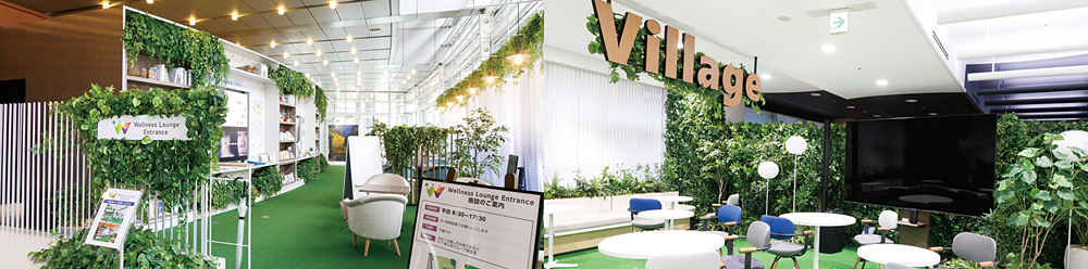 Wellness Loungeは現在、1日50名程度の利用がある。NTTグループの従業員がメインだが、本実証実験に参画している企業が一時パスを使って利用するケースもある。一方、隣接するNTT東日本の本社ビルからの動線がなく、一部の従業員のみの利用にとどまっているという課題も存在した。そのため同じく3月末に本社ビルの1階に「Wellness Lounge Entrance」を新たに整備し、NTT東日本グループ関係者や同社に訪れた顧客に対して開放しているほか、同ビル3階に「Wellness Village」もオープンした。Wellness Villageでは従業員のコミュニケーション活性化のほか、イベントやピッチコンテストなどへの活用を予定している。これらの整備によって本社ビルから低層棟ビルへの動線を確保したのだ。