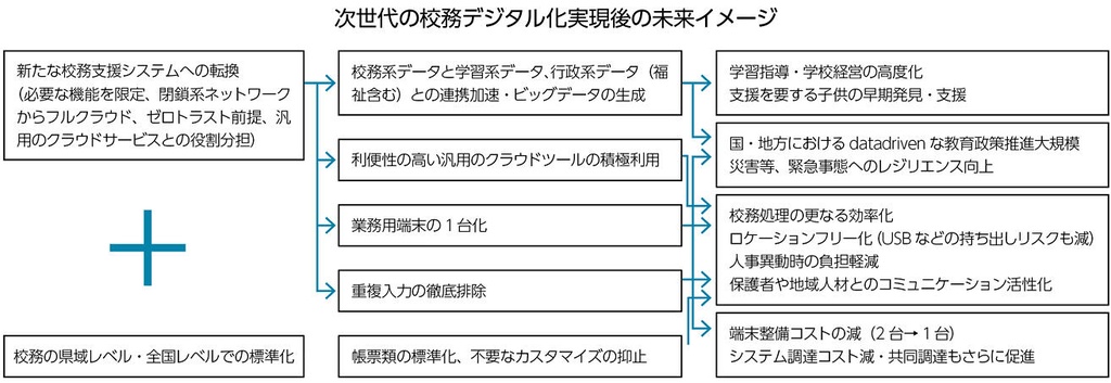 子供たちの学びを変革するとともに必要なのが、教員が行う校務や、教育委員会も含めた教育行政の効率化だ。クラウド時代に最適な共通基盤やシステムを整備する事業について見ていこう。